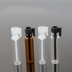 Stock 1mL 2ml 3ml Mini transparente ámbar muestra fragancia botella tubo Perfume prueba Vial con varilla de goteo de plástico
